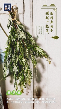 民谚说:“清明插柳,端午插艾”。在端午节,人们把插艾草和菖蒲作为重要内容之一,家家都洒扫庭除,以菖蒲、艾条插于门眉,悬于堂中。菖蒲是多年生水生草本植物,它狭长的叶片也含有挥发性芳香油,是提神通窍、健骨消滞、杀虫灭菌的药物;菖蒲叶片呈剑型,插在门口可以避邪,所以方士们称它为“水剑”,后来的风俗则引申为“蒲剑”,可以斩千邪。艾草代表招百福,是一种可以治病的药草,插在门口,可使身体健康。