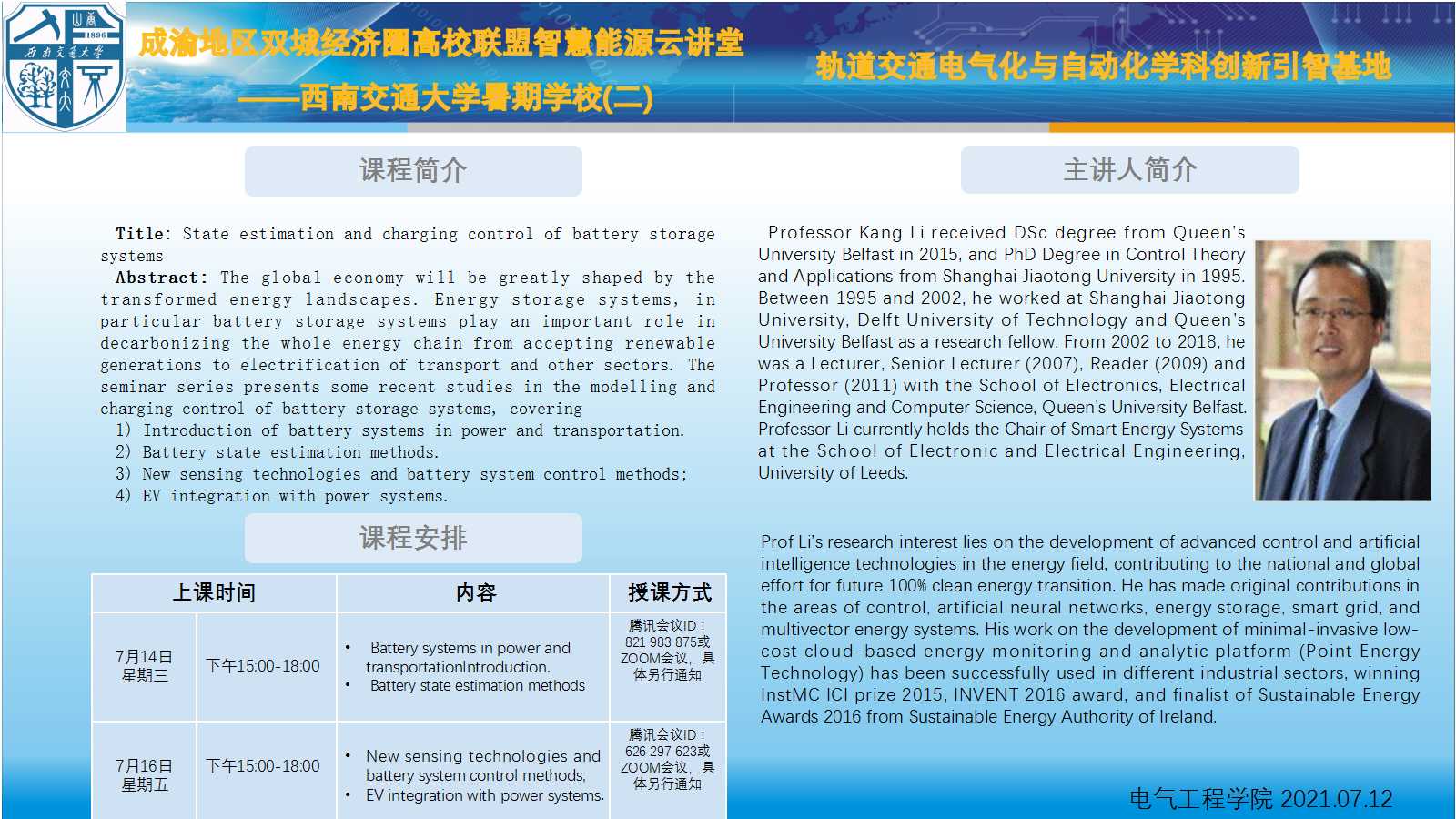 成渝地区双城经济圈高校联盟智慧能源云讲堂 ——av大平台 暑期学校(二)相关简介如下: