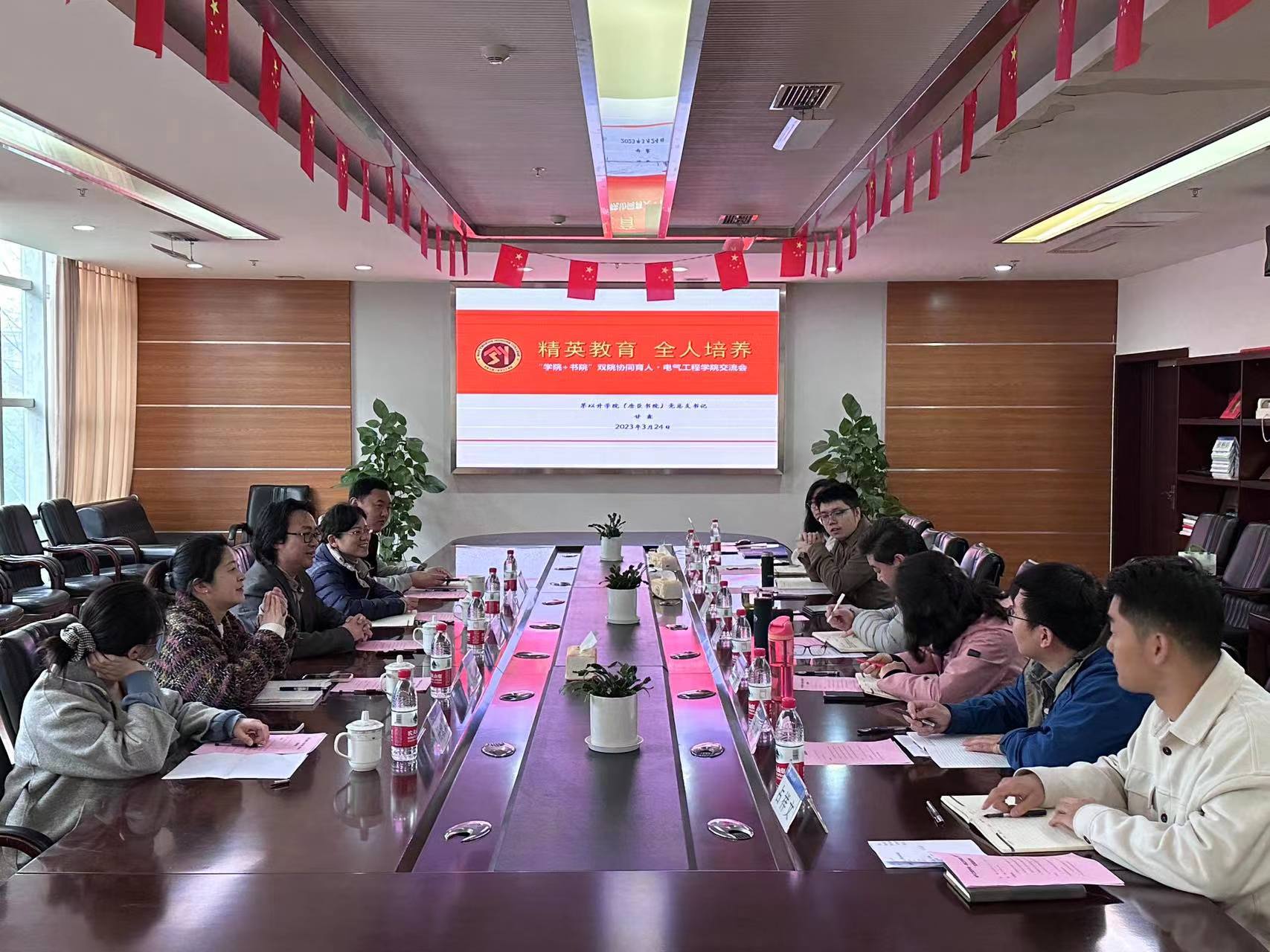 3月24日上午10时,av大平台 ——茅以升学院(唐臣书院)交流座谈会在电气馆10212顺利开展。参加本次会议的有:学院党委书记罗乾超,党委副书记王轶,团委书记张异,辅导员李诗涵、关怀、詹睿、占祥文;茅以升学院党总支书记甘霖,党总支副书记、学生工作组组长王霞,专职组织员孟涵,综合管理办公室副主任任凯利,辅导员任淑莉。
