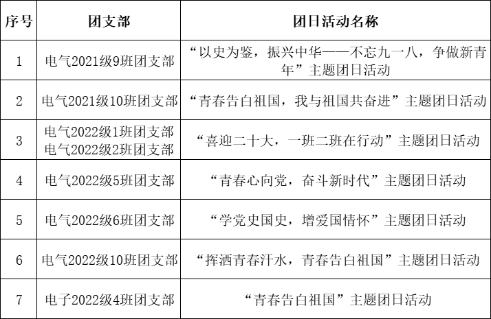 根据《关于开展秋季学期第一堂团课及主题团日活动的通知》要求,经前期团支部开展并申报、学院团委审核评选,现将av大平台 2022年“院级示范主题团日活动”名单公布如下: