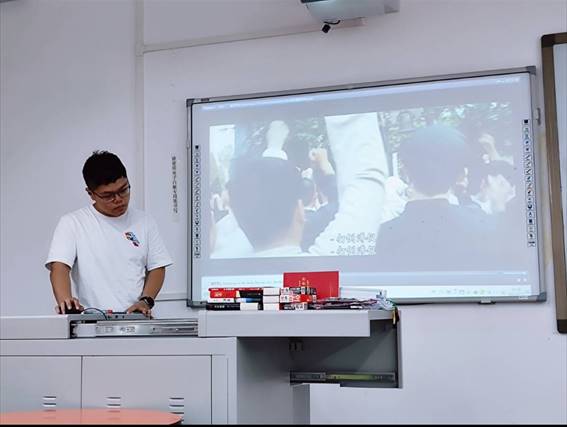 观影结束后,李名昊、孙海洋同志分别组织了党史、校史有奖问答和党史、党建、应知应会知识竞赛,沈悦洋同志负责记录比分。