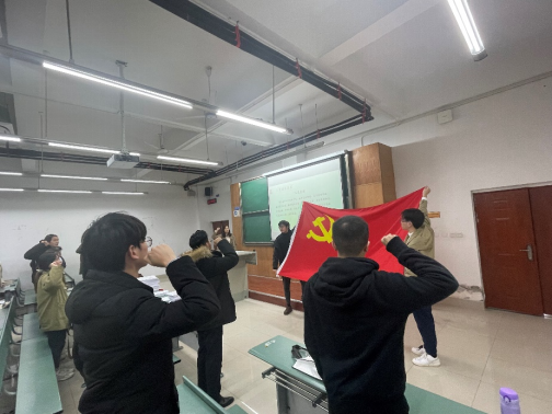 随后,全体党员同志对党旗进行庄严的入党宣誓,也在大会上表达了自身的想法与决心,不忘初心跟党走,在今后的学习工作中,坚定目标、严格要求自身,努力改正现有不足,积极向优秀党员学习,树立先锋模范作用。