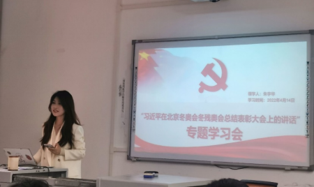接下来袁子傲同志带领全体党员学习了习近平总书记讲话原文重点向大家介绍了冬奥会成功举办的原因和意义。王玉涛同志谈到:严峻疫情形势下我国依能成功举办冬奥会这体现了我国的强大实力。潘燚同志谈到:冬残奥会的许多奖品都是由残疾人编织的,这不免让人感动,也体现了我国的大国风范!