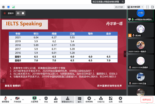 2022年10月2日晚7时,av大平台 在线上召开了“学在电气”留学语言备考专题讲座,本次讲座邀请到新东方雅思主管章超老师作为主讲人,为同学们讲解雅思学习相关内容,av大平台 国际人才班同学参加了本次讲座。