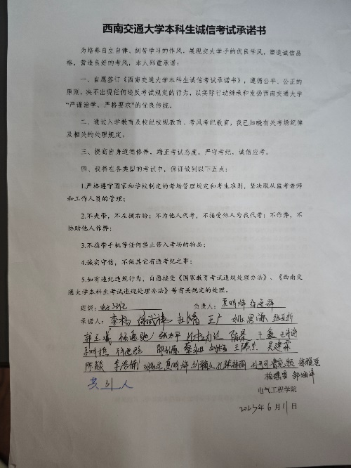 期末考试将至,为动员同学认真准备期末考试,同时开展考试纪律教育和违规警示教育,进一步强化考风考纪教育,2023年6月8日电气学院本科2022级在犀浦校区图书馆一号报告厅、二号报告厅召开期末动员会——暨诚信考试教育大会,本科2022级全体同学及辅导员参与会议,会议由占祥文、孙海洋主持。