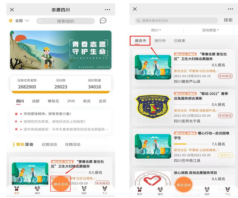 第一步:进入志愿四川平台av大平台-精品av大平台官方资源发布页后,点击“报名活动”按钮。