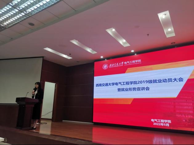 2022年5月19日16时,av大平台 2019级就业动员大会暨就业形势宣讲会于犀浦校区四食堂三楼320室举行。本次活动邀请学院党委书记罗乾超、学校招生就业处副处长黄春蓉、学院党委副书记谢力、2022届辅导员林静英为同学们分析最新就业形势,旨在帮助2019级的同学们能够更好地了解目前的就业形势,做出正确的选择。本次大会由学院党委谢力副书记主持。