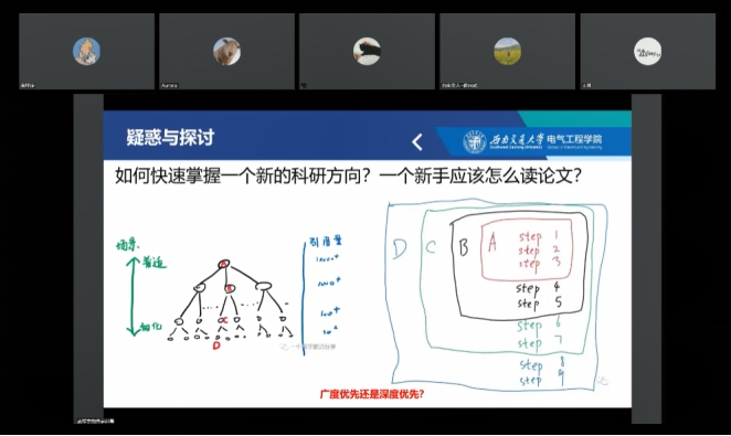 在会上,孟祥宇以“如果重返研一我会做什么”“如何从本科生过渡到研究生”“一个新手应该怎么读论文”“sci写作顺序”等问题为切入点,结合个人学术生涯经验,从时间规划、心态过渡、文献阅读与写作等方面与同学们进行分享与探讨。