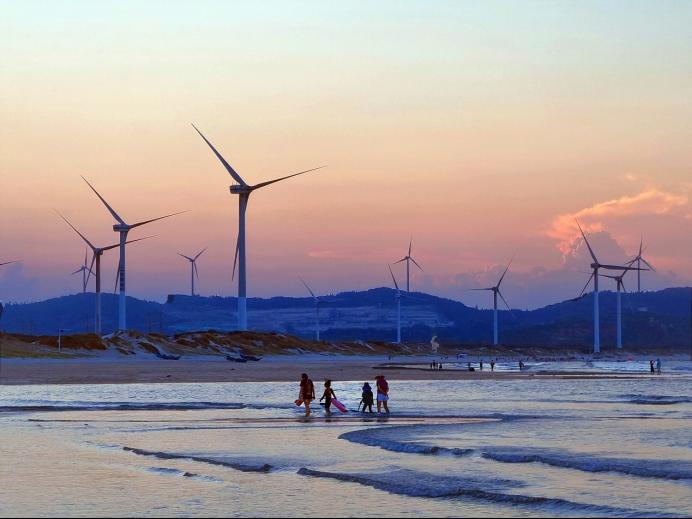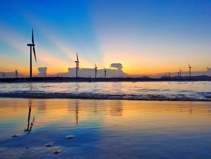 作品一:海上风电场的晚霞