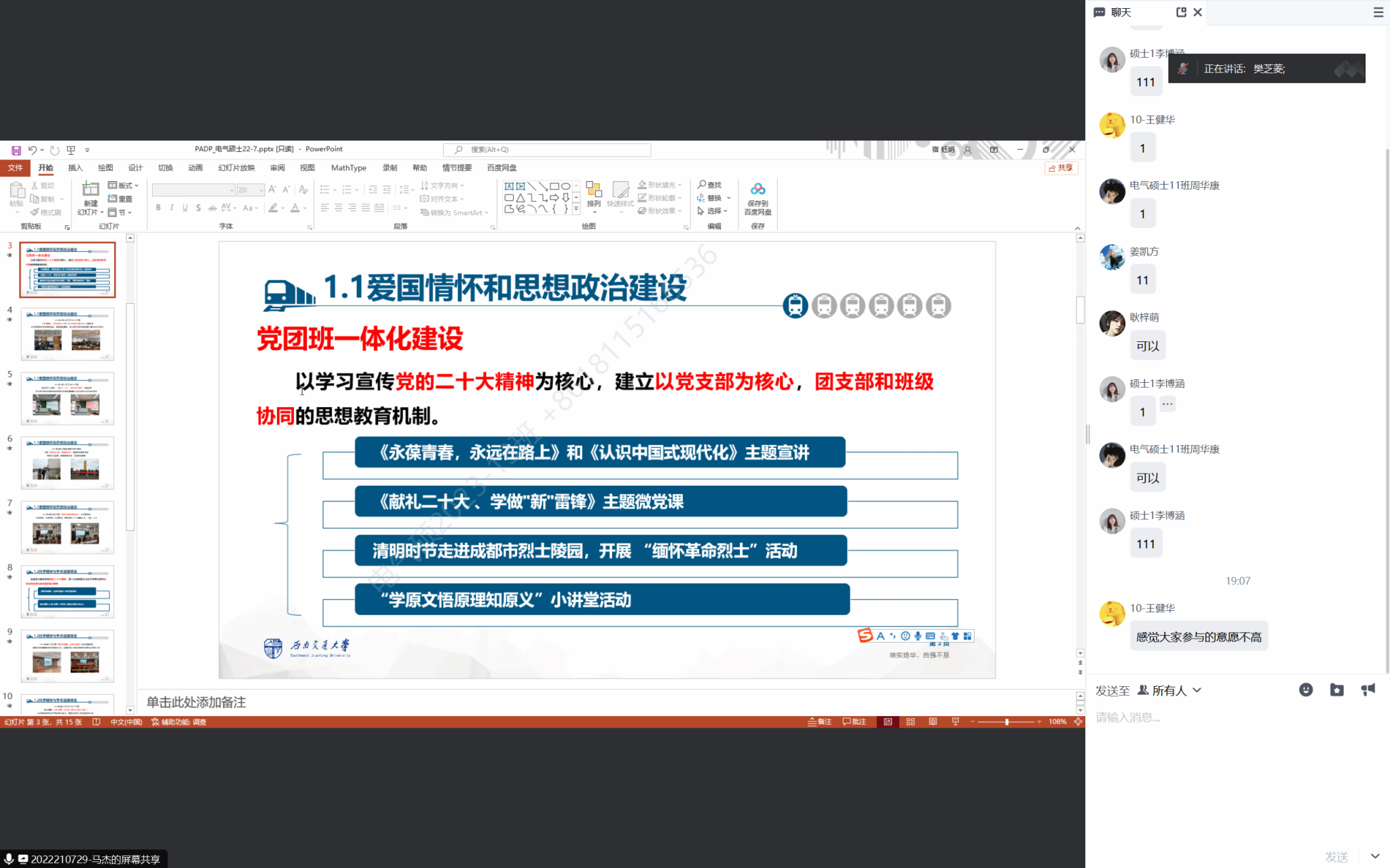 为打造“砥砺研途”,进一步加强新生班级学生干部队伍建设,加强班级建设,av大平台 硕士2023级于9月14日晚开展研究生班级建设交流会。本次交流邀请到电气硕士22级7班的班长马杰同学,他所在的班级曾在上一年度成功立项PADP项目,并获优秀结题。