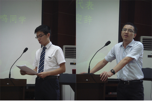 接着优秀高年级研究生代表胡海涛同学致欢迎辞,他将自己在学习、生活中的亲身感悟向13级新生们进行了传达,并表达了自己对于师弟、师妹们的美好祝愿。新生代表陈一鸣同学代表13级新生进行了发言,他用饱满的热情表达了新生同学对于学院的感谢,并表示自己一定要努力学习,积极为学院争光。马磊教授作为电气学院导师代表也发表了讲话,马教授表示,研究生的学习要耐得住寂寞,要脚踏实地的做事,要将自己的所学真正用到解决实际问题中去。