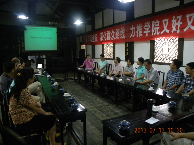 院长高仕斌教授首先讲话,他代表学院领导班子就2013年上半年工作作了整体评价,对领导班子工作情况做了详细的介绍。半年来,学院在青年教师培养、学科建设、科研项目、实验室建设以及人才培养等方便投入了大量的工作,重视学院的全面发展,并取得了可喜的成绩。其中:马磊教授当选中国控制自动化学会控制理论和技术委员会委员,吴广宁教授获得2012年国家科学进步二等奖,在新一轮的评估中电气工程学科排名全国并列第八,国家轨道交通电气化与自动化工程技术中心以优异的成绩通过科技部验收等等。接着,高院长就暑假期间和下半年的工作做了具体的介绍,着重对人才培养、科研项目管理、学生就业等方面作了部署,强调“人才培养是学校的根本任务”的思想,要求各位教师要爱生如子,培养出更多优秀的学生。