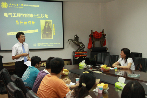 6月7日下午16:00在电气馆3211,继上一期av大平台 博士生沙龙之“优博”面对面的成功举办,为了营造勤学交流,群策群力的学术氛围,不断打造通往学术创新的阶梯,承办方av大平台 2012级博士生班再次重磅出击,推出博士生沙龙第二季——“体悟名师阅历,启迪创新思维,点亮智慧人生”博士生沙龙之名师面对面。本次沙龙活动由学生工作处和av大平台 联合主办,获得了av大平台 学风专项建设精品项目的资助。沙龙的主讲嘉宾是av大平台 副校长、研究生院院长、国家级教学名师冯晓云教授。活动由博士生班班长臧天磊主持。