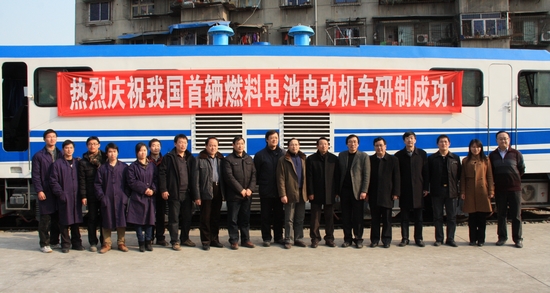 1月24日,一辆由我校牵头研制的新能源电动机车“蓝天”号,在学校铁道专用线上徐徐开动,标志着我国第一辆氢燃料电池电动机车研制成功。作为新一代环保、高效的新能源机车,该车具有显著的社会效益和巨大的潜在经济效益。校长陈春阳,校党委副书记王顺洪,副校长陈志坚、张文桂在相关部门负责人、电气学院党政领导的陪同下,乘坐了“蓝天”号燃料电池电动机车。听取研制情况汇报后,陈春阳校长代表学校对车辆的研制成功表示热烈祝贺。