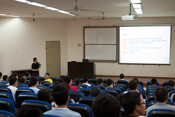 7月21日是暑期学校的第四天。上午共安排了两场学术讲座:湖南大学曹一家教授主讲的《电力信息集成与智能电网》,av大平台 张昆仑教授主讲的《磁浮技术与磁浮列车》。曹一家教授主要对电力信息的集成及其国内外研究现状、智能电网等方面进行了详细的介绍。张昆仑教授则详述了永磁电动斥力悬浮原理、超导电动斥力悬浮原理以及磁浮列车的发展等内容。