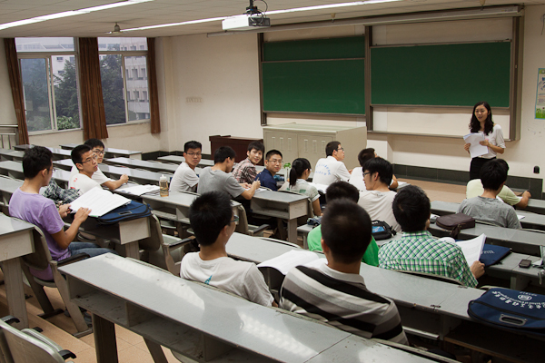晚上7点半,各班在逸夫馆召开了“破冰”班会。班导师和班主任与学员们面对面交流,互相了解。在自我介绍时,学员们纷纷表示,希望能在暑期学校中多多学习、多交朋友。为了便于班级管理,每个班级都进行了班委选举,有班长、学习委员、生活委员和文体委员。经过一番自我推荐和民主选举,各班的班级组织体系相继确定,一个个完整的班集体已然形成。