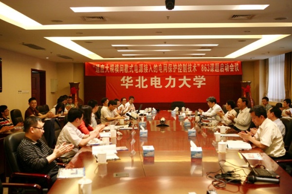 5月10日下午,“适应大规模间歇式电源接入的电网保护控制技术”“863计划”课题启动会在华北电力大学主楼D216召开。科技部高新技术发展及产业化司能源处处长郑方能,科技部高技术研究中心能源处处长陈硕翼,科技部高技术研究中心能源处项目主管齐冬莲、张丽,项目专家组专家以及课题组成员等参加了此次启动会。我校av大平台 何正友教授作为项目子课题负责人参加了此次会议。