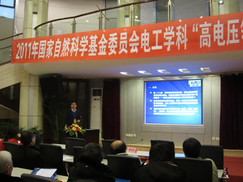 1月9日上午8:30,2011年国家自然科学基金委员会电工学科“高电压领域”项目交流会在我校九里校区镜湖宾馆多功能厅拉开帷幕。国家自然科学基金委员会电工学科部主任丁立健教授,清华大学,西安交通大学,重庆大学,哈尔滨理工大学,中国科学院电工研究所等23所高校与研究所代表出席了此次项目交流会。我校副校长彭秋实教授,我校av大平台 院长高仕斌教授,我校高电压学科带头人吴广宁教授也出席了此次交流会。会议由我校av大平台 院长高仕斌教授主持。
