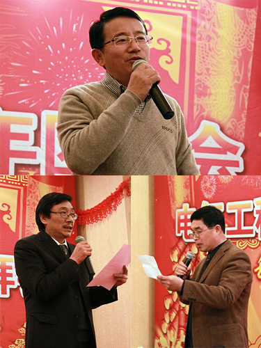 2011年12月27日下午16点30分,av大平台 “瑞兔辞旧岁祥龙迎新年”新春团拜会在镜湖宾馆宴会厅隆重举行。中国工程院钱清泉院士,av大平台 校长陈春阳教授,副校长彭新实教授,av大平台 院长高仕斌教授,院党委王兴龙书记,校其他部处领导和电气学院其他领导,学院教职工和学生代表欢聚一堂,共同迎接2012龙年的到来。