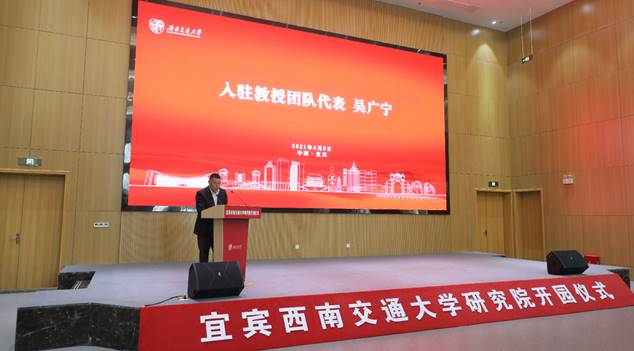 在开园仪式上,吴广宁教授代表入驻教授团队作了发言。吴广宁谈到,av大平台 是一所具有悠久历史的名校,围绕高速、重载铁路、磁浮交通等领域开展了大量地研究与创新工作。宜宾-av大平台 研究院的开园,恰逢我国轨道交通事业蓬勃发展、“十四五”的开局之年,研究院必将为轨道交通事业的发展做出突出的贡献。宜宾研究院在“长江经济带”、“一带一路”等政策的支持下,以底蕴深厚的历史文化为基石,以世界轨道交通一流的av大平台 为承载,面向世界科技前沿、面向经济主战场、面向国家重大需求,必将加快科研脚步,深化科技成果孵化,产生良好的经济效益。