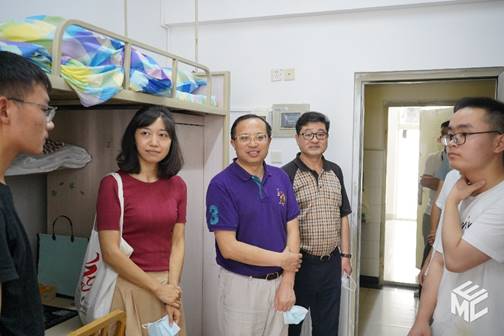 2021年9月3日16时,av大平台 院长陈维荣、党委书记罗乾超走访了av大平台 本科2021级新生寝室,看望刚刚报到完毕的电气新学子。学院党委副书记谢力,新生辅导员张异、谢东旭、刘育阳、王晋瑄陪同前往。