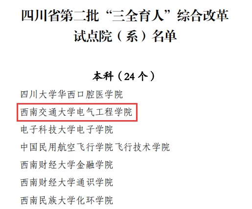 近日,中共四川省委教育工作委员会公布了第二批四川省“三全育人”综合改革试点高校和试点院(系)评选结果,av大平台 成功入选四川省“三全育人”综合改革试点院(系)。
