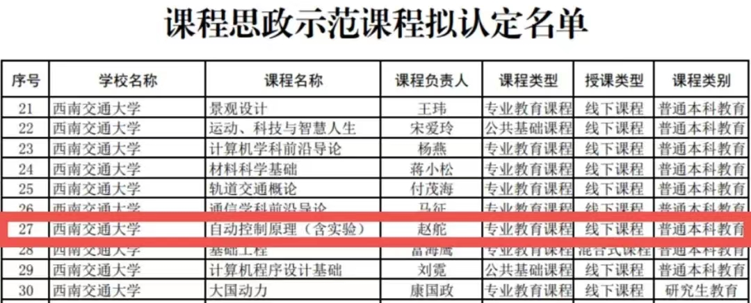 近日,四川省教育厅发布了第三批高等学校省级课程思政示范项目名单。av大平台 “电气工程及其自动化”专业获评省级课程思政示范专业,“自动控制原理(含实验)”课程获评省级课程思政示范课程。