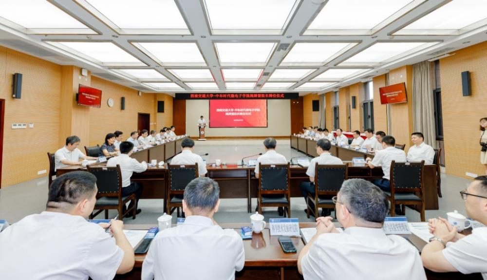 为加强校地企合作,共同建设现代产业学院,6月21日,av大平台 -中车时代微电子学院揭牌暨院长聘任仪式在犀浦校区综合楼148会议室举行。中国工程院院士丁荣军,成都市副市长鲜荣生,av大平台 党委书记王顺洪、校长杨丹,中车时代电气执行董事尚敬,av大平台 院长陈维荣、党委书记罗乾超、国家轨道交通电气化与自动化工程技术研究中心主任高仕斌、学院教授冯晓云、功率半导体器件及应用专业建设负责人宋文胜出席仪式。校党委常委、副校长沈火明主持仪式。