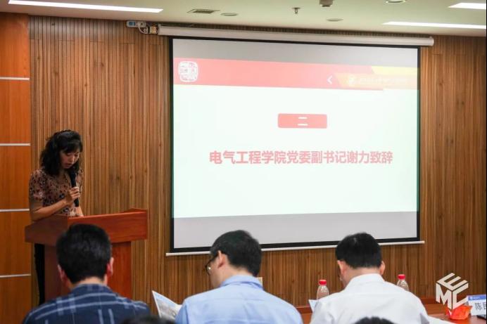 答辩赛开始,学院党委谢力副书记致辞。谢力副书记指出,各个班级的发展离不开学院的支持与指导,优秀成绩的背后是同学们挑灯夜读的努力、互相帮助中的进步,全体老师们的悉心指导。同时也对电气学子在过去一年中积极践行“厚德载物,求是创新”的电气精神表示肯定。最后,谢力副书记预祝本次精英班级答辩赛圆满成功,希望同学们做“眼里有光”“脚下有路”“肩上有责”的新青年,祝愿各位同学可以不断学习、积极进取,践行“强国有我”的庄严承诺,让奋斗的汗水浇灌出成功之花。