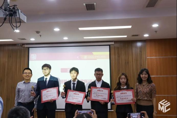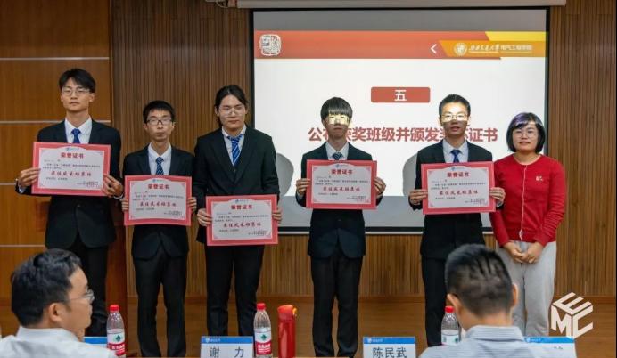 在交流环节结束后,主持人宣布了本次答辩赛的获奖名单。陈民武副院长、谢力副书记、赵舵老师、黄德青老师、张异老师为获奖班级颁发荣誉证书和奖杯。