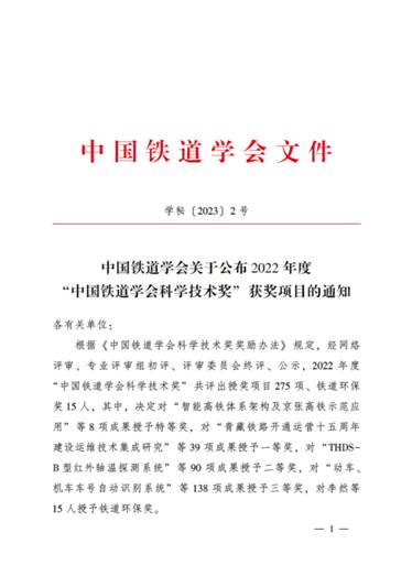 中国铁道学会科学技术奖是铁道行业最有影响、最具权威的科技奖项,见证了铁道行业挑战极限、勇创一流的科技辉煌。该奖项根据《国家科学技术奖励条例》和《社会力量设立科学技术奖管理办法》的规定,结合铁路行业实际而设立,由中国铁道学会负责组织。中国铁道学会科学技术奖评审委员会经过对推荐材料的形式审查和对推荐项目的技术审查,以及专业评审和综合评审等过程,通过严格遴选产生获奖结果。