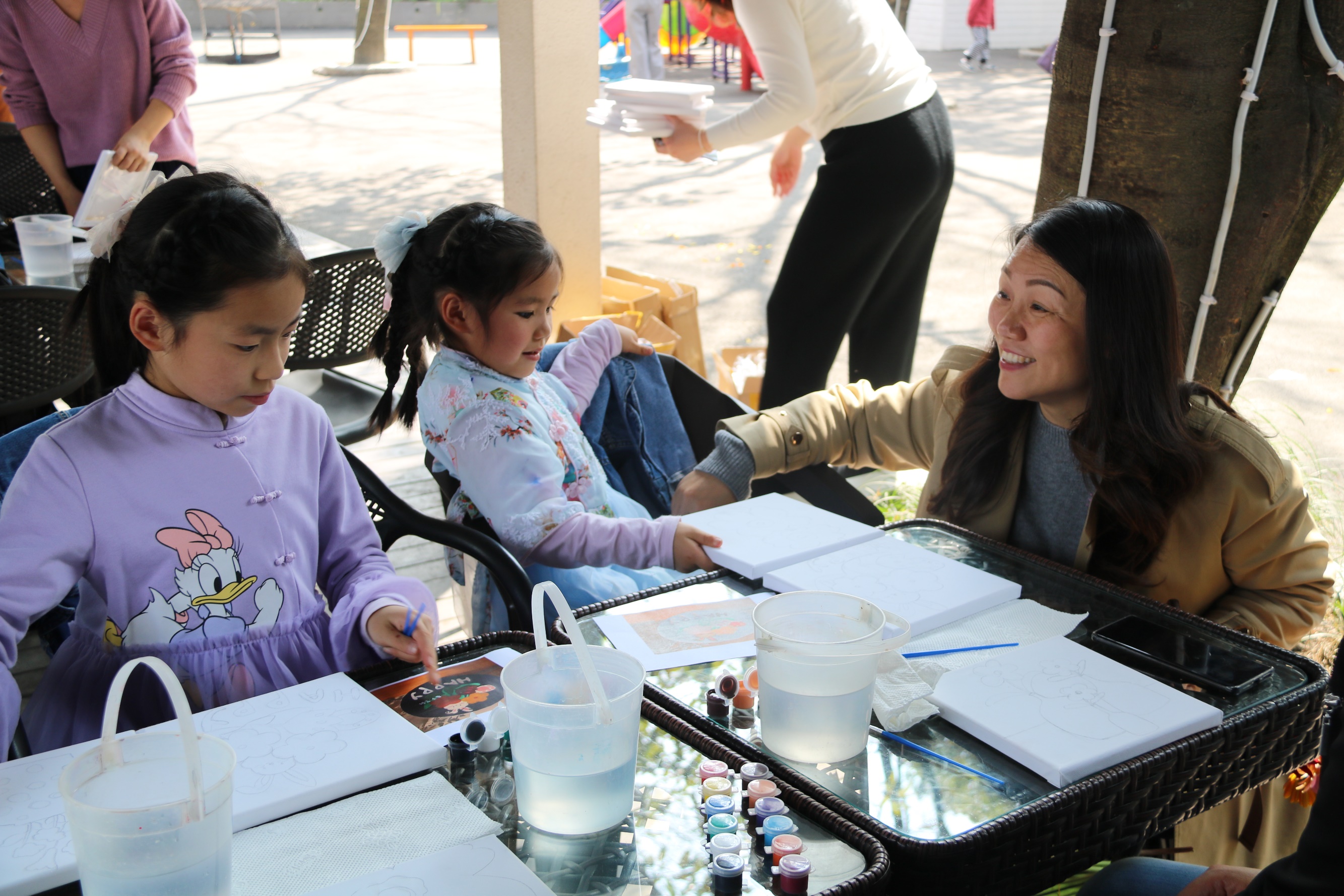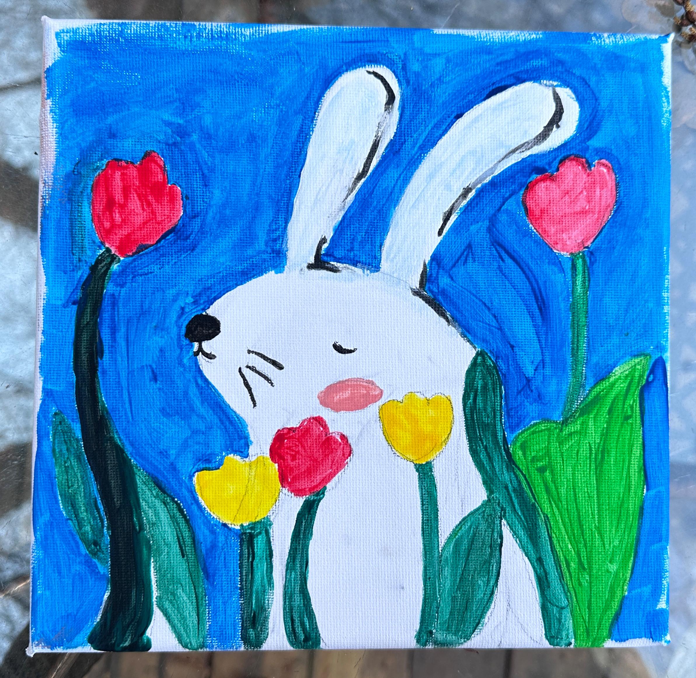午后,工作人员简单讲解油画的绘制技巧和注意事项,大家拿起画笔在画板上认真地勾勒起来。活泼可爱的小兔子、色彩艳丽的红玫瑰、慵懒可爱的小橘猫……经过大家的努力,一幅幅色彩美丽的油画陆续完成,老师们成就感满满。