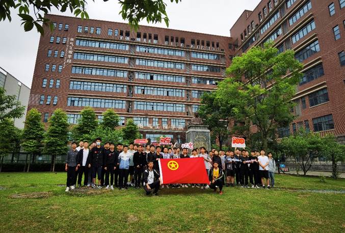 在曹老铜像前,同学们佩戴团徽,高举右拳,向鲜红的团旗庄严宣誓——“我志愿加入中国共产主义青年团,坚决拥护中国共产党的领导……”同学们跟着领誓人大声宣誓,坚定地表示自己定会听从党和共青团组织的指挥,勤奋学习,积极工作,为共产主义事业而奋斗。一句句誓词铿锵有力,久久回荡在电气馆上空。