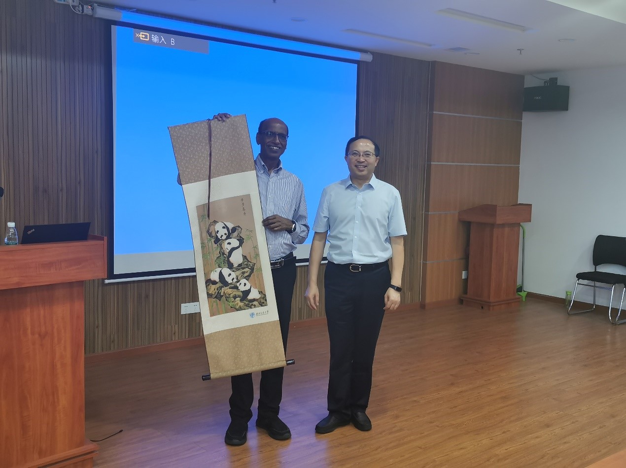 After a warm welcome, Professor Kaushik Rajashekara launched a high-level academic lecture which tells the mechanism, advantages and disadvantages of different types of fuel cells; research status and recent progress of proton exchange membrane fuel cell (PEMFC) in rail transit, automobile, ship, aircraft and other transportation modes; introduction to the principle and structure of fuel cell power generation system, control method, characteristics of power electronic converter and other core technologies, the future development trend.