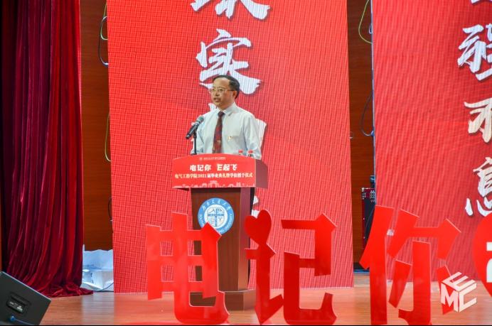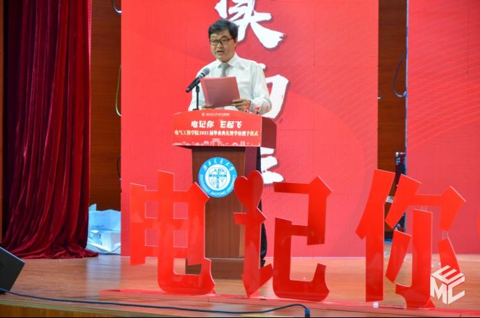 Students of the 2017 Class, Wang Yan, Wang Yiyun, Wang Haowen and Wang Xueqi spoke on behalf of the graduates, expressing their deep gratitude to the faculty members, academic staff and all those who had helped them during the four years of care and love. After that, Zhao Zuwen, a representative of the graduates, gave a gift to the college, wishing the prosperous development of the electrical business.