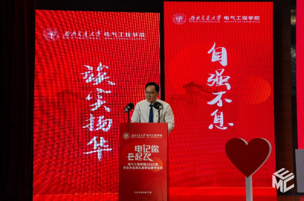 Afterwards, Prof. Chen Weirong delivered a speech and extended warm congratulations to the 2022 graduates. He put forward three expectations to the graduates: First, strengthen belief and cultivate innovative thinking. Second, work hard and explore innovative paths. Third, be brave to open up and maintain the drive for innovation. He also said that the college will always be the strong backup of the students, and will always be the home of Jiaotong University Electric people.