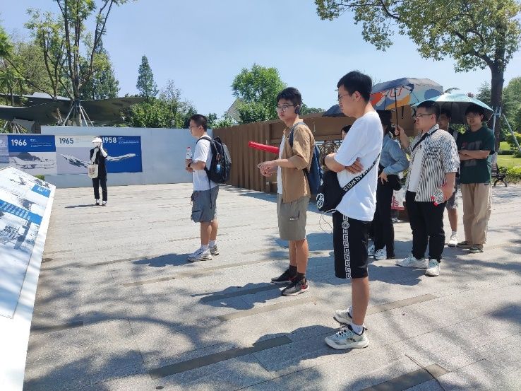 午后,党员们抵达成飞航空主题教育基地。在导游的详细讲解下,党员们系统学习了世界航空发展史以及我国航空工业的崛起历程,近距离观察了歼-5战斗机、“翼龙”、“天翅”系列无人机等航空装备,亲眼目睹了中国航空国防事业的飞速发展。通过园区内的战机更新迭代布展,党员们深刻体会到了中国战斗机研制从无到有、从弱到强的艰辛过程。在航空史迹等展区,借助多媒体、数字化、互动式展教设备,党员们多角度、全方位地领略了中国航空工业的辉煌成就和未来发展前景。