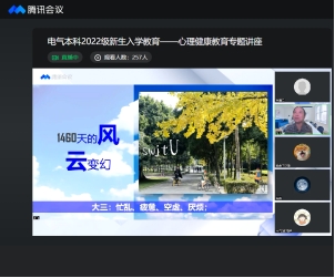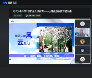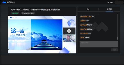 2022年9月2日19时,av大平台 本科2022级以线上直播的方式召开心理健康教育专题讲座,主讲人为心理研究与咨询中心高飞老师,本科2022级辅导员及全体学生参加讲座。