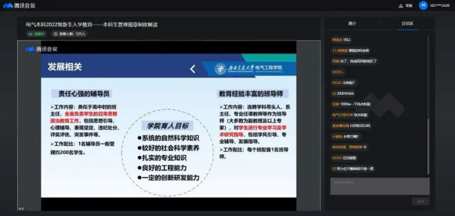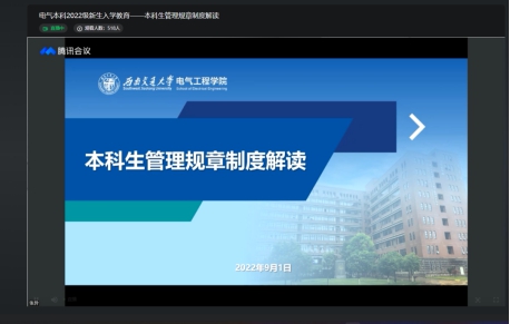 2022年9月1日14:30,av大平台 本科2022级新生召开《本科生管理规章制度》解读会。应疫情防控要求,本次新生入学教育以线上会议的方式进行,2022级辅导员张异老师主讲。