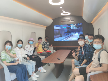 首先, 实验室的王潇飞博士用视频的形式简明介绍了高温超导磁悬浮的动力来源、学科特点,运用液氮展示了高温超导的原理,并带领同学们参观了高温超导磁悬浮工程化样车及试验线,展示了样车外部机械构造和内部结构:样车采用全碳纤维轻量化车体、低阻力头型、大载重高温超导磁浮技术等新技术和新工艺,设计时速620千米每小时;而且由于高温超导体自身的钉扎特性,将保持车体上下左右稳定,实现其他交通工具难以达到的平稳性,乘客乘坐舒适度高。