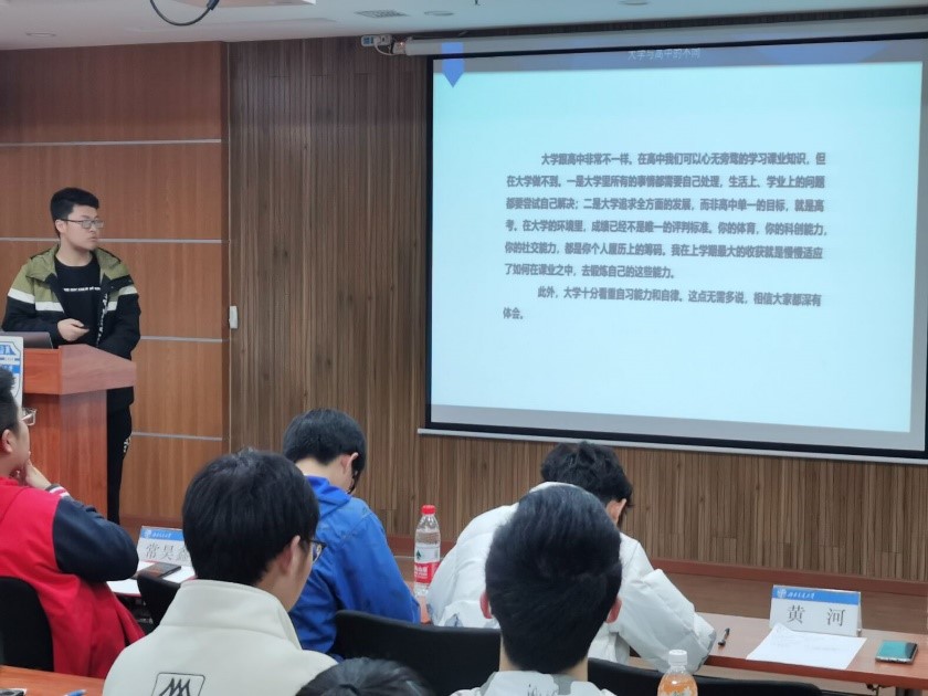 首先是2018级学长范昱骁展开科创经验分享,范学长对各种学科竞赛进行了分析,为同学们讲解各个竞赛的难度、性质、内容等干货,为大家的竞赛之路指明道路;之后是2019级学生常昊鑫展开学习经验的分享,主要介绍了大一同学正在学习的电路分析、大学物理、高等数学等学科的学习方法和小技巧;接着,2020级学生代表鲍子形、徐思润为大一同学分享了他们的学习技巧和心得体会,并给出了很多实用建议;最后,是2021级学生黄河为大家分享他初入大学以来的心路历程以及成长变化,分析了大学生活、学习与之前的不同,为两个社团的大一同学指点迷津。