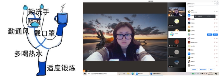 随着秋冬季节的到来,新冠肺炎疫情防控压力陡增,进入11月,成都市内再度出现了本土疫情,防控工作再次敲响了警钟。为引导同学们正确认识疫情,了解疫情,做好防控疫情的准备,11月5日晚19:30,av大平台 硕士2021级10班同学以云见面的方式开展了“疫情防控,战‘疫’有我”主题班会,提醒大家严格重视本次疫情,保护自身的安全。
