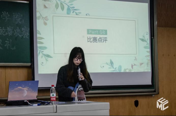 在正反双方作完总结陈词后,章若茗对辩论双方的表现做出了精彩的点评,对辩论队员的精彩表现予以肯定,同时也指出了双方的不足。