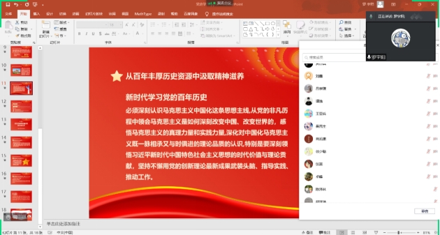 今年是中国共产党百年华诞及“两个一百年”奋斗目标历史交汇的关键节点。9月24日,av大平台 硕士2021级10班在线上召开了“百年潮起共读史”党史学习交流会,感受中国共产党一路走来的艰辛与辉煌。班级党支部全体成员参加了交流。