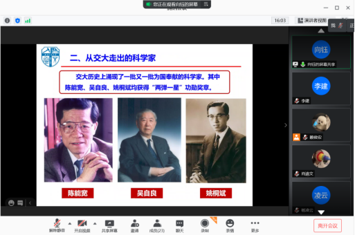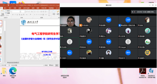 硕士研究生2020级通过线上和线下开展本次活动,12月9日中午在电气馆X10832,辅导员谭笑组织班级班长、党支书等主要班委共同学习《大会精神》和《研究生学术道德诚信规范》,并强调班级负责人要组织好班级线上学习。大会首先学习了习近平总书记的讲话,总书记强调“我国经济社会发展和民生改善比过去任何时候都更加需要科学技术解决方案,都更加需要增强创新这个第一动力。”结合习近平总书记讲话,重点学习了陈能宽、吴自良、姚桐斌三位获得“两弹一星”功勋奖章的交大科学家故事,学习《研究生学术道德规范》,通过前辈们的感人事迹和校纪校规,提醒研一新生应严格要求自己,尽早确立研究生学业目标。