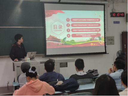 首先,唐茂森同志组织同学们观看爱国视频《建国大业》和《我和我的祖国》部分片段,拉开了爱国教育学习会活动的序幕。通过PPT向同学们展示新时代爱国主义学习会的内容,以“新时代爱国主义”为主题,唐茂森同学通过七个章节,简要介绍了我们国家的近代发展史,展示了中国70年来的辉煌成就以及对新时代大学生的启发。