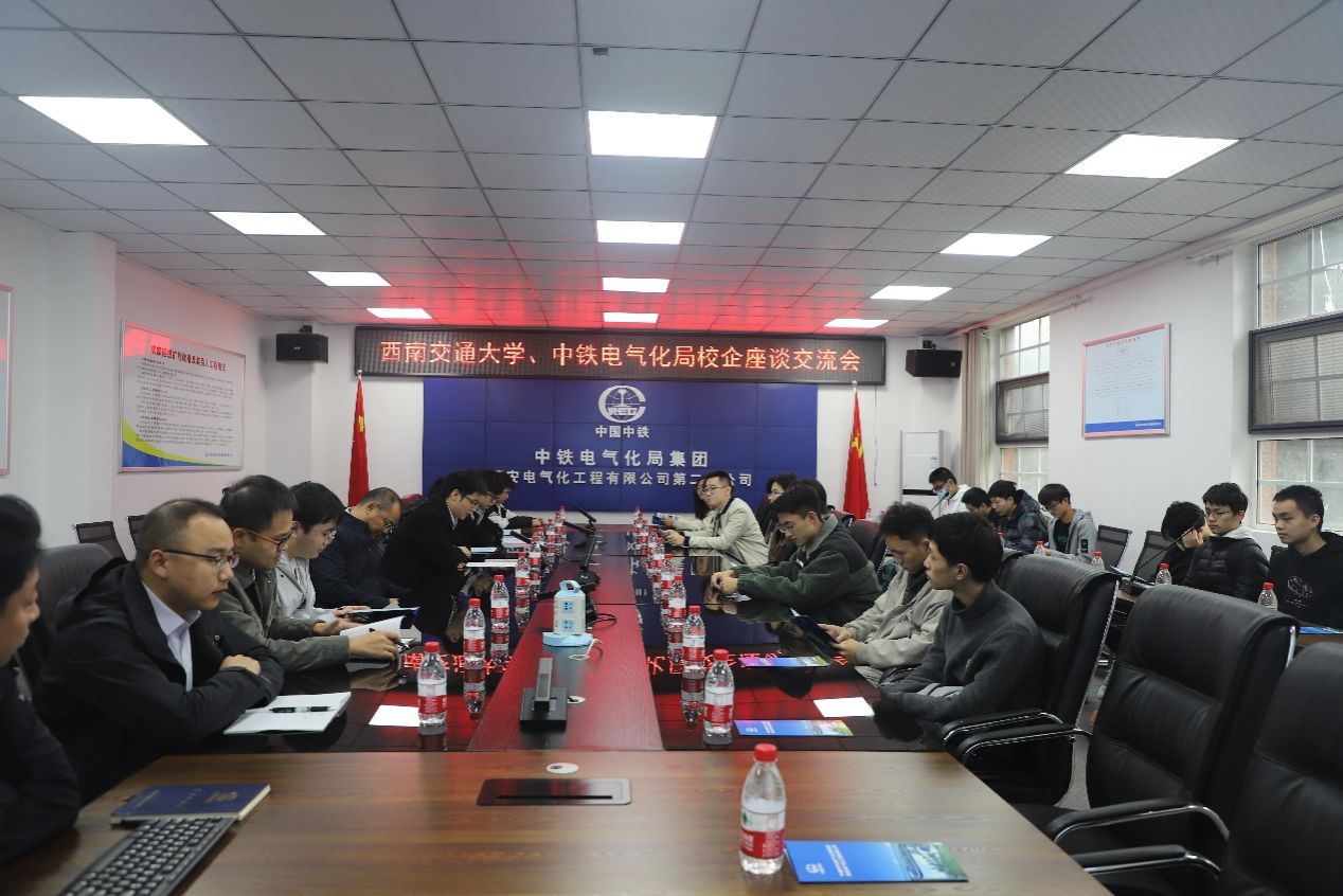 随后,本次交流以座谈会形式展开,项目经理龙发志对同学们的到来表示热烈欢迎,并对公司的基本情况做了简要介绍。接着,同学们观看了中铁电气化局“添翼”文化宣传片和智能建造宣传片,进一步了解企业。