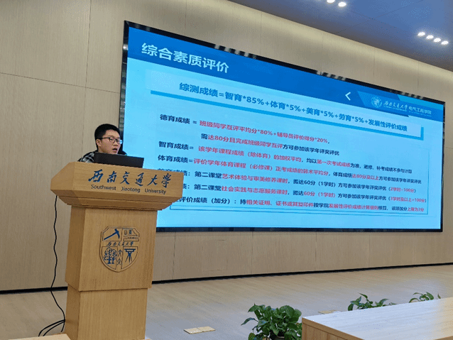 2023年11月20日晚19:30,av大平台 本科2023级在av大平台 犀浦校区图书馆一、二号报告厅开展了“综合素质评价办法和网络素养提升”专题讲座。主讲人为本科2023级辅导员詹睿、罗霁轩,全体新生参加。