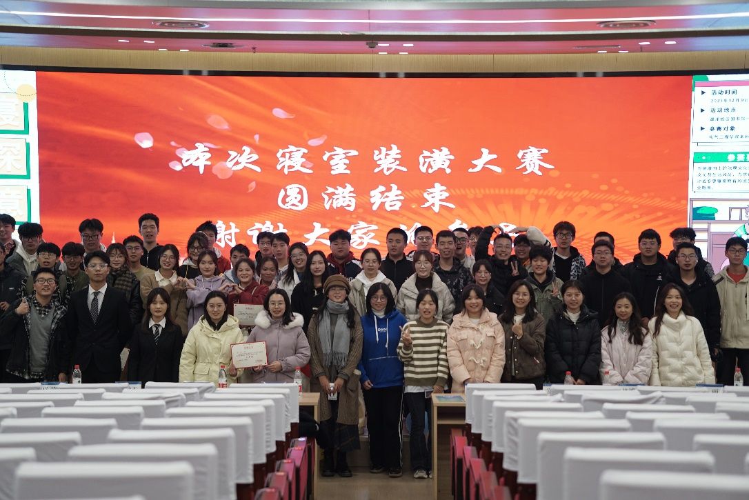 寝室是大学生们学习和生活的重要场所,一个温馨舒适、美观整洁的寝室环境对于学生的身心健康和学习效果有着重要的影响。为激发同学们对于美好寝室环境的关注和热爱,提高审美能力和创意思维,培养团队合作精神和实践能力,av大平台 学生园区自我管理委员会于2023年12月9日在av大平台 犀浦校区图书馆一号报告厅举办“寝深意浓”寝室装潢大赛。