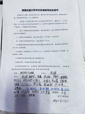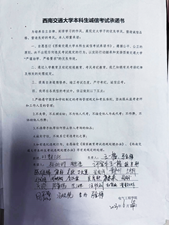 紧接着,两位老师着重强调了考场纪律,并提醒同学们注意携带证件等。随后带领同学们学习《av大平台 本科生考试违规处理办法》并签订了诚信考试承诺书,以真实的案例警醒同学们要诚信考试。